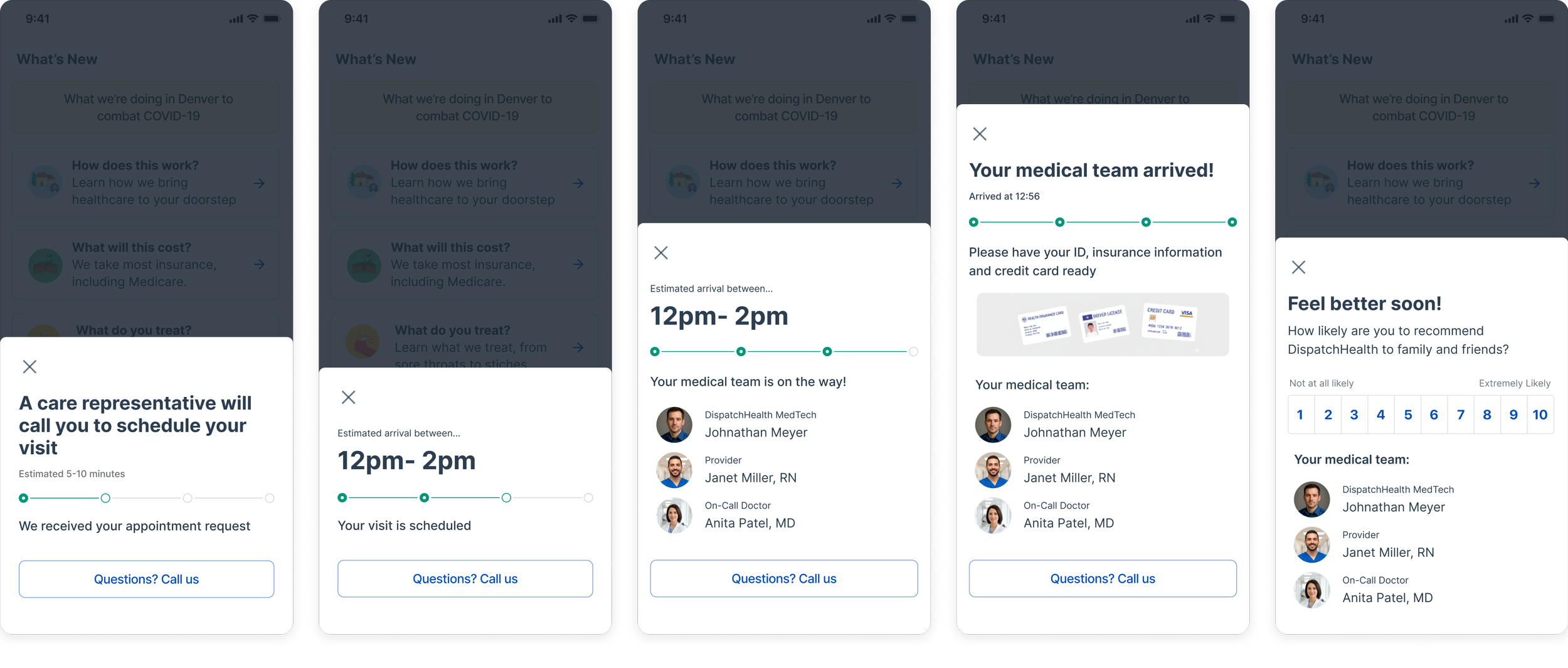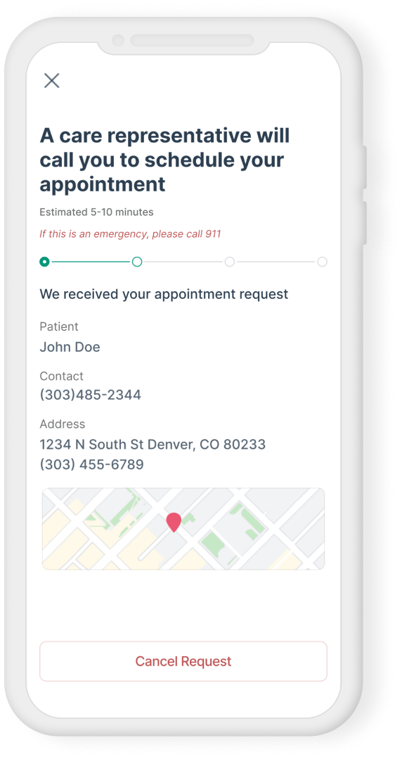 DispatchHealth gives patients access to medical care from the comfort of their own home. However, there was a significant number of patients who were not completing their appointment after making an online request. It was our job to figure out why, and come up with a solution to fix it.